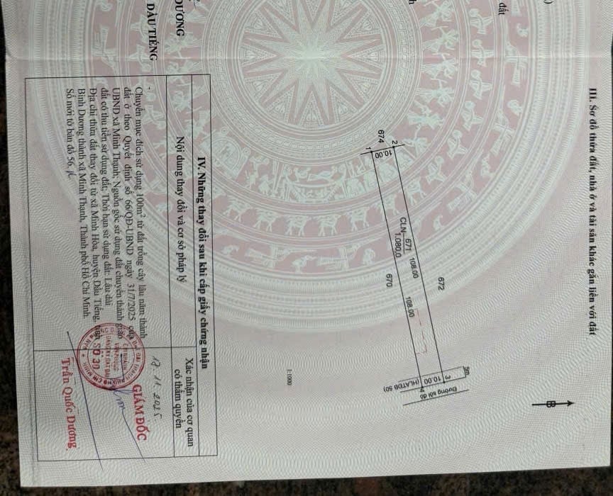 Cơ hội sở hữu quỹ đất hiếm hoi 1000m2 với 100m2 thổ cư, tọa lạc tại vị trí đắc địa, chỉ cách hồ Dầu Tiếng hơn 1km. Lô đất duy nhất này sở hữu mặt tiền đường nhựa rộng rãi, dân cư đông đúc và hệ thống tiện ích đầy đủ, sẵn sàng đáp ứng mọi nhu cầu sinh hoạt và kinh doanh.